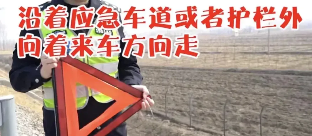 2、将三角警示牌的反光面对向来车方向,放在身前,便于其他车辆观察到自己。