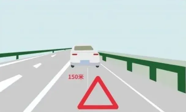 当发生事故或车辆故障时,若人员无受伤或受伤轻微且车辆还能移动的,在确保安全的前提下,立即将车移动至右侧应急车道,打开危险报警闪光灯,在车辆后方150米正确放置三角警示牌,提醒后方来车注意安全。